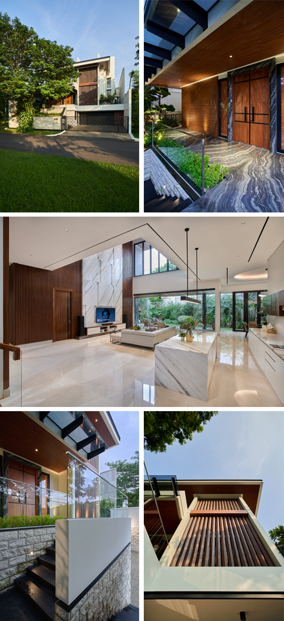 Konsep desain rumah tropis di Indonesia tidak hanya berhenti sebagai kebudayaan arsitektur yang diwariskan turun temurun, namun juga telah hadir sebagai suatu prinsip desain yang dikenal dengan Arsitektur Tropis. Seperti sebuah mahakarya PT. Parama Dharma dan PT. Grhadika, rumah yang memiliki bentuk desain modern tropis di bilangan Jakarta Utara dan serta interior yang didesain oleh PT. Damar Laras Cipta berkolaborasi dalam membangun rumah modern tropis. Kayu dan marmer pada fasad depan rumah tinggal dengan konsep modern tropis ini dipilih untuk memberikan perpaduan yang seimbang antara kesan mewah dan natural.